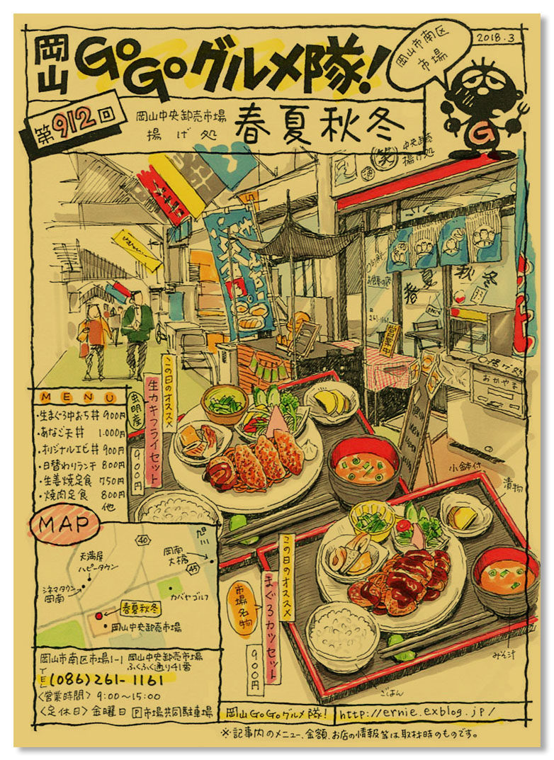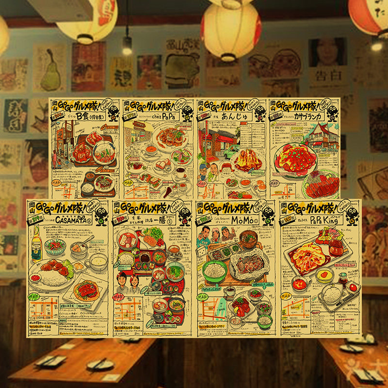 Day Style Retro Kraft Paper Hand-painted Gourmet Menu Decoration Painting Late Night Canteen Day Grocery Store Room Soft-mounted Poster