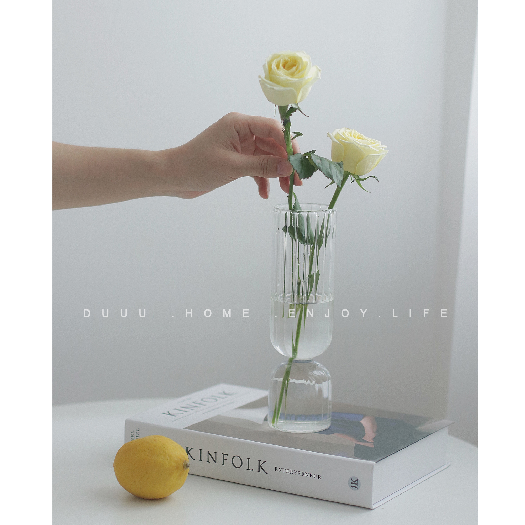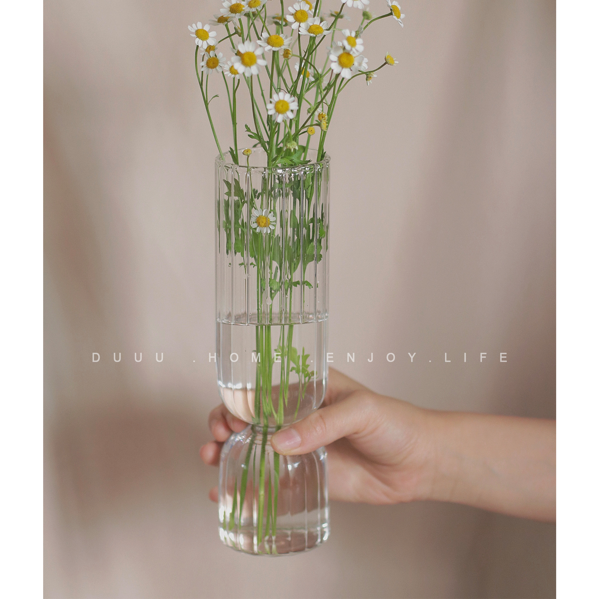 French straight vertical striped tulip perfume cultivation vase Korean ins with the same flower shop niche decoration photo props