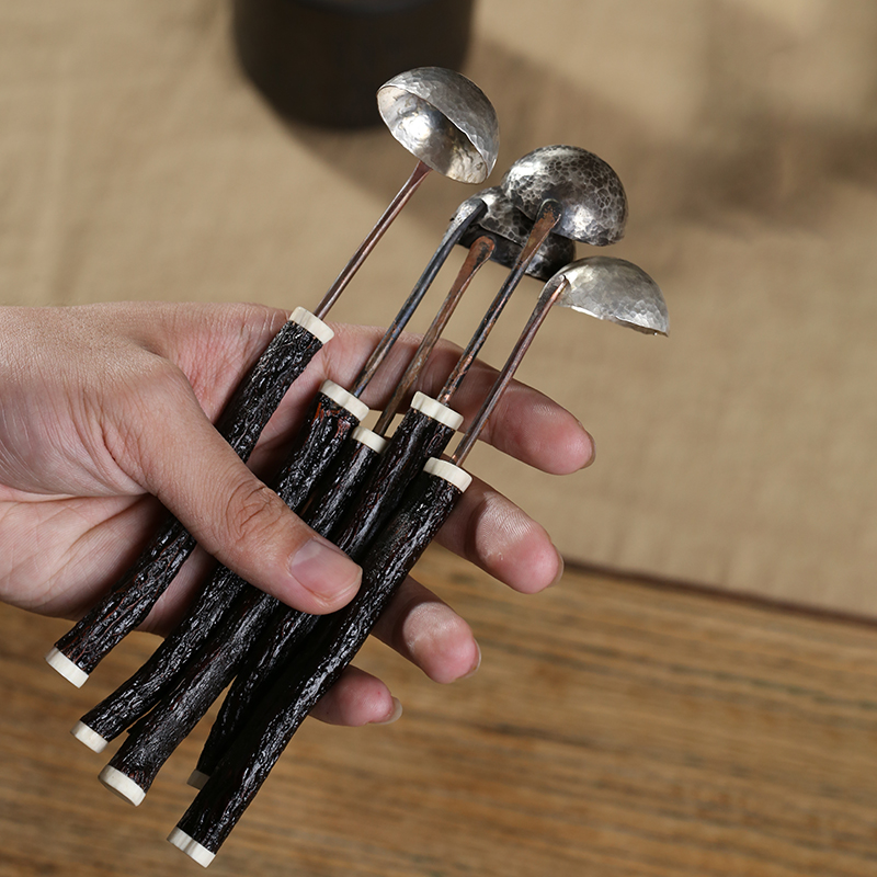 Wind Valley Mountain House Day Style Pure Handmade Pure Silver Tea Spoon Retro Home Teaspoon Teaspoon Tea Cupping Kung Fu Tea Road Accessories Six Gentlemen
