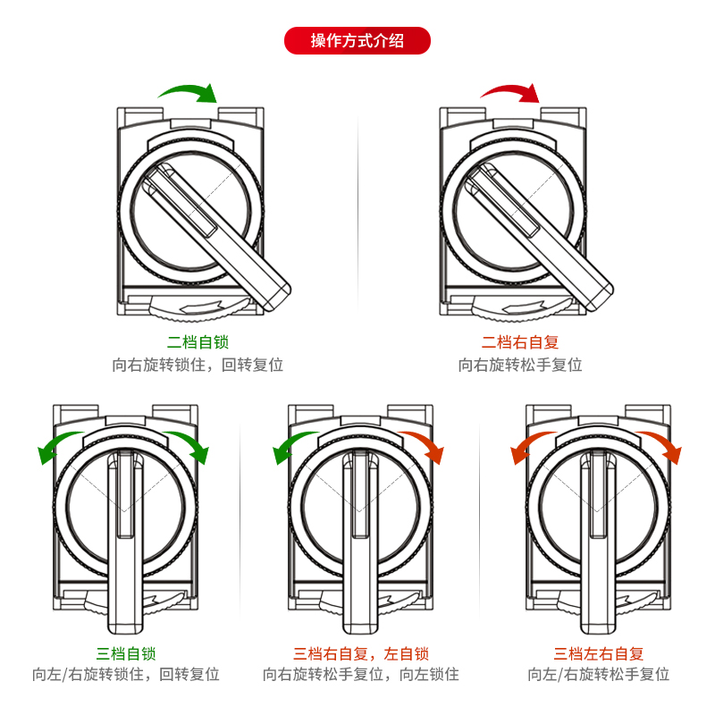 Black two-gear self-locking knob button (open one closed) red two-gear self-locking knob (open one closed) green two-gear self-locking knob (open one closed) black three-gear self-locking knob button (two often