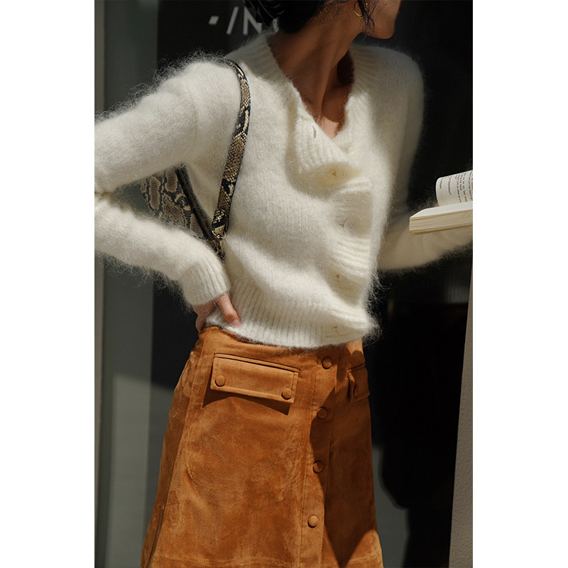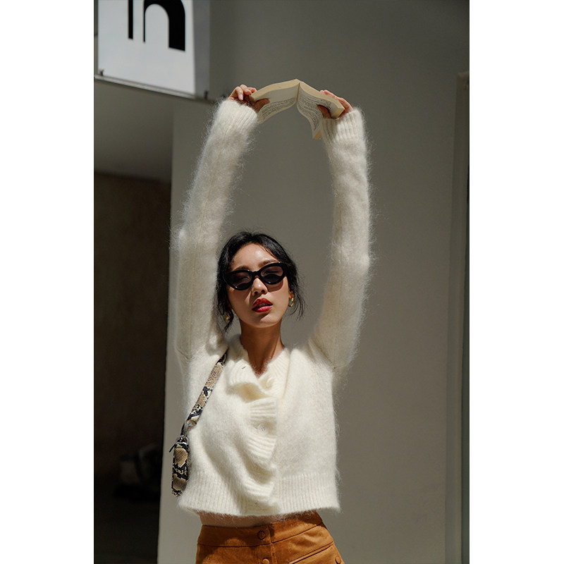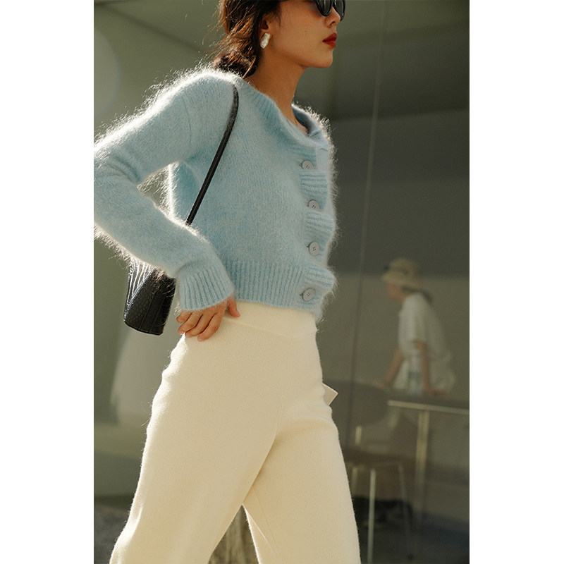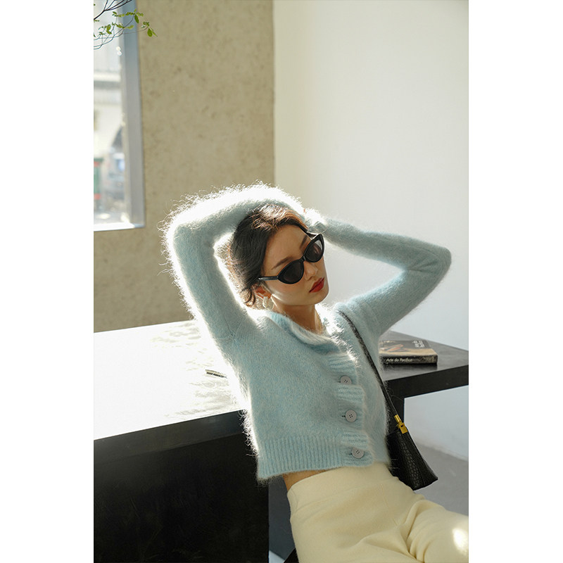 MICHELLYMO mohair sweater coat women profile soft waxy milk blue gentle wind knitted cardigan winter
