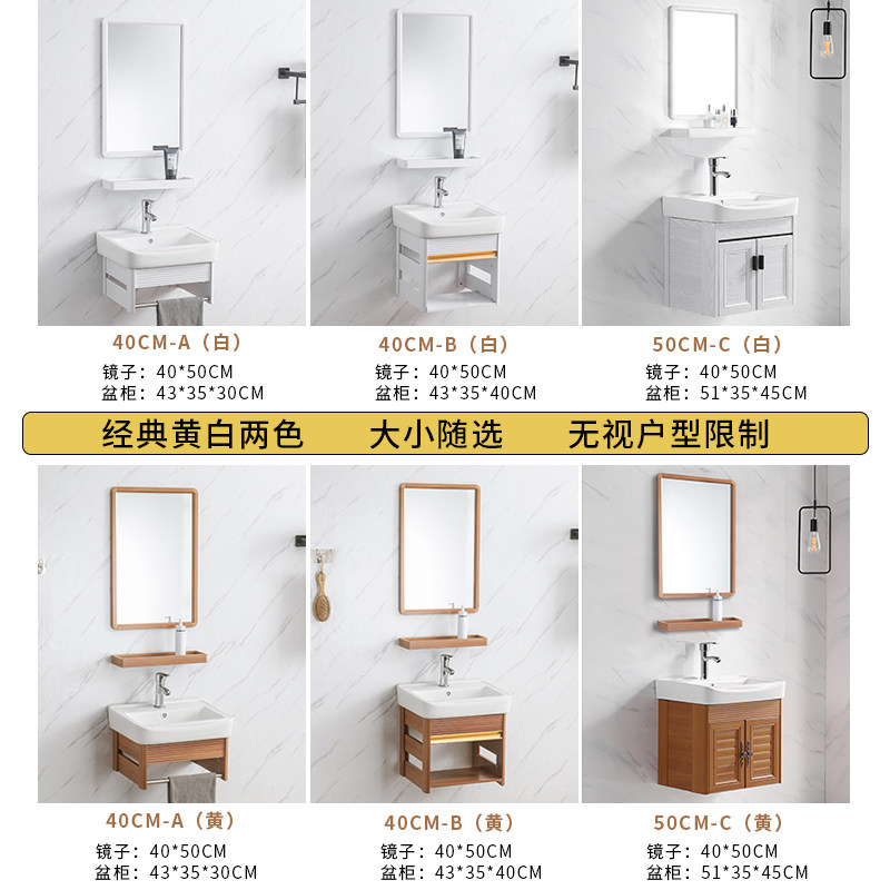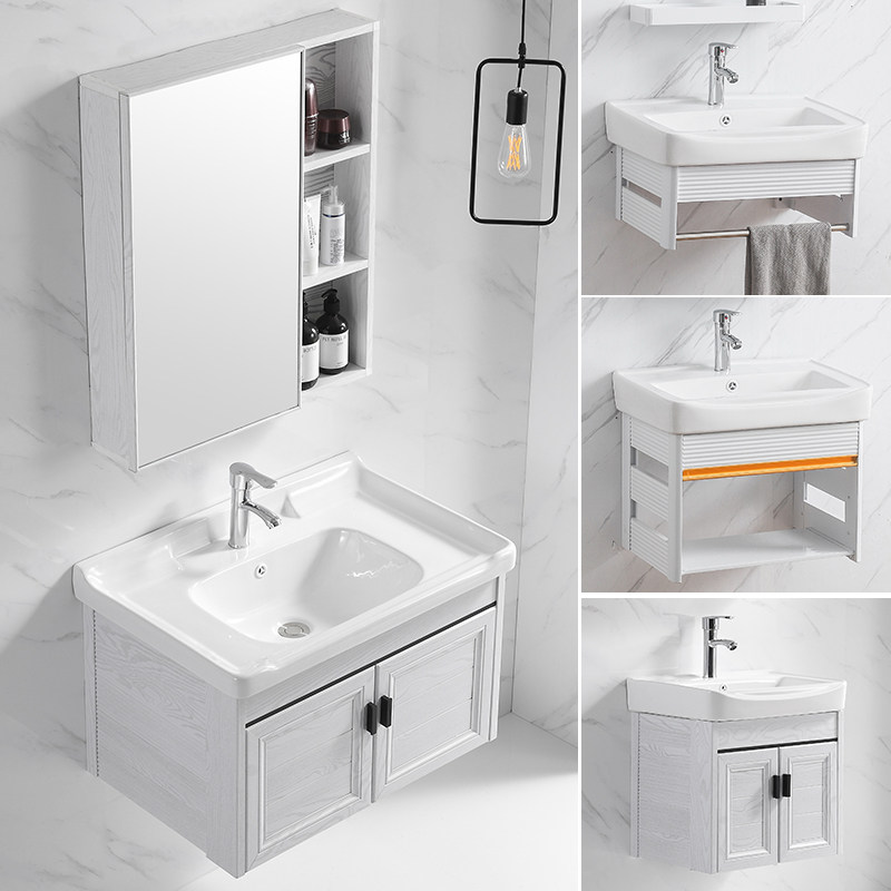 Small apartment wall-mounted washbasin washbasin cabinet combination Ceramic washbasin simple space aluminum bracket Balcony cabinet