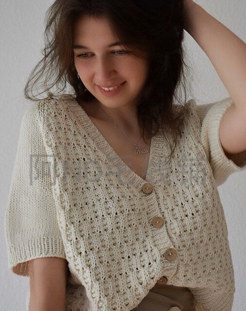 Water wave cardigan Long short sleeve 2in1 cardigan A No Chinese weaving illustration text description drawing