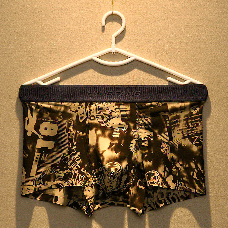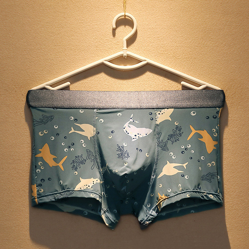 Ice Silk Briefs Men Ultra Slim Four Corner Pants Summer Youth Cartoon Printed Cool And Breathable Mid-Waist Four-corner Shorts Head