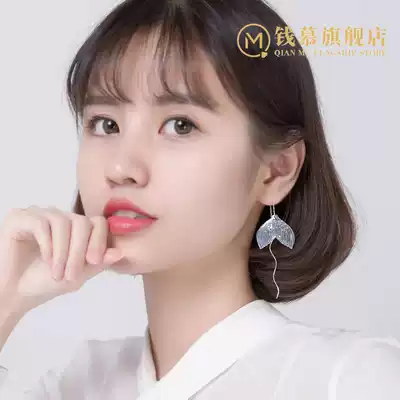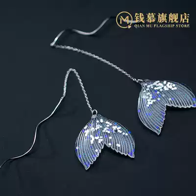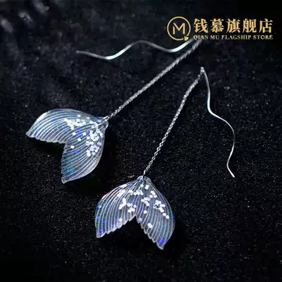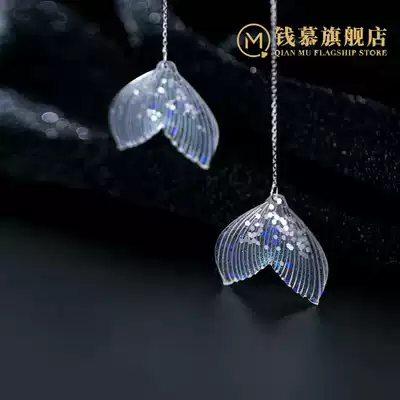 Qian Mu S925 sterling silver ear needle fish tail earrings unique design fresh ocean style transparent simple flash ear jewelry