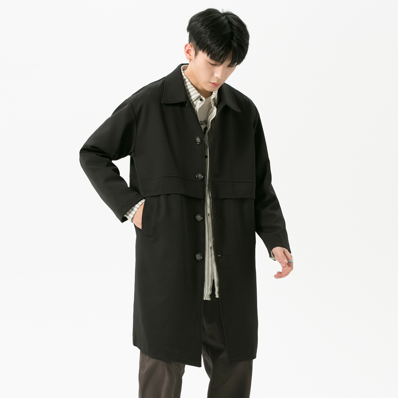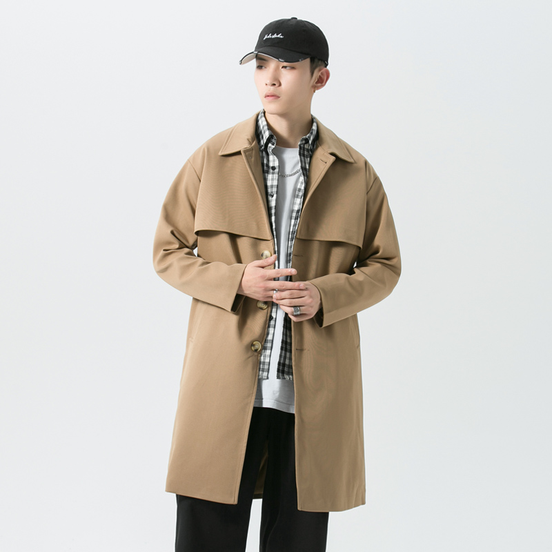 Spring Autumn Season Pure color minimalist Wind dress Men's medium Long version Loose Feeling Tide Day Ensemble with a handsome coat of clothing and a jacket
