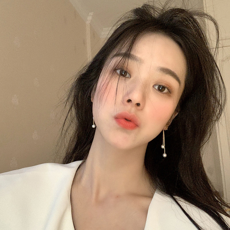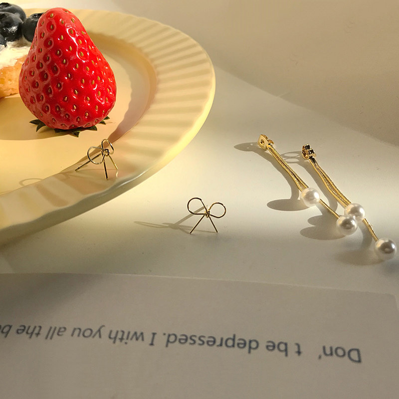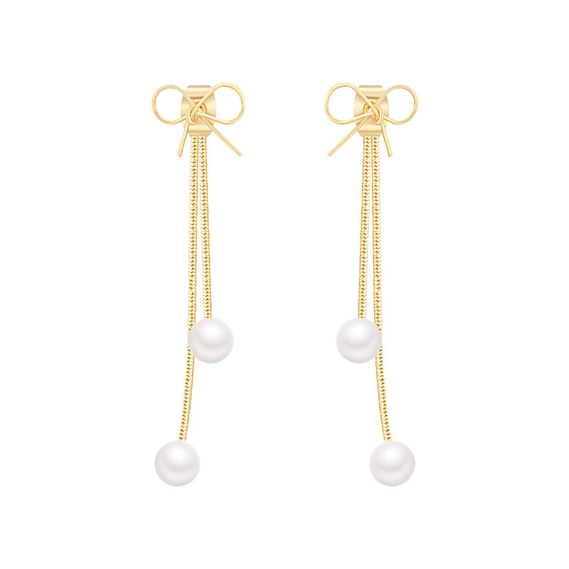 Pearl tassel earrings long Korean temperament Internet celebrity fashion premium bow stud earrings female simple cold wind