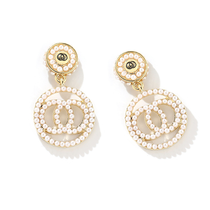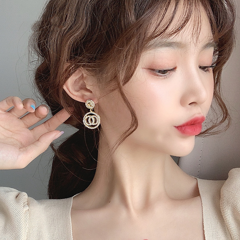 Small fragrance double C earrings female pure silver pearl Korea temperament network red 2023 new tide of niche design