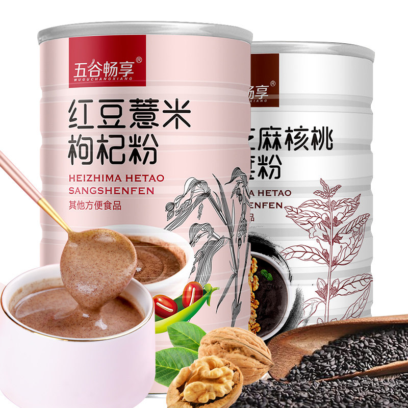 2 cans of black sesame walnut Mulberry powder nutrition meal replacement breakfast red bean barley rice flour grain powder drink 1200g