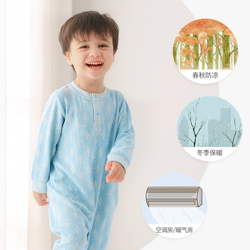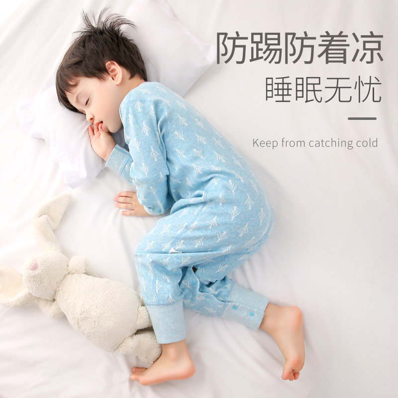 Cotton shop children's one-piece pajamas spring and autumn pure cotton thin style one-piece sleeping bag for boys and girls baby anti-kick one-piece pajamas for children