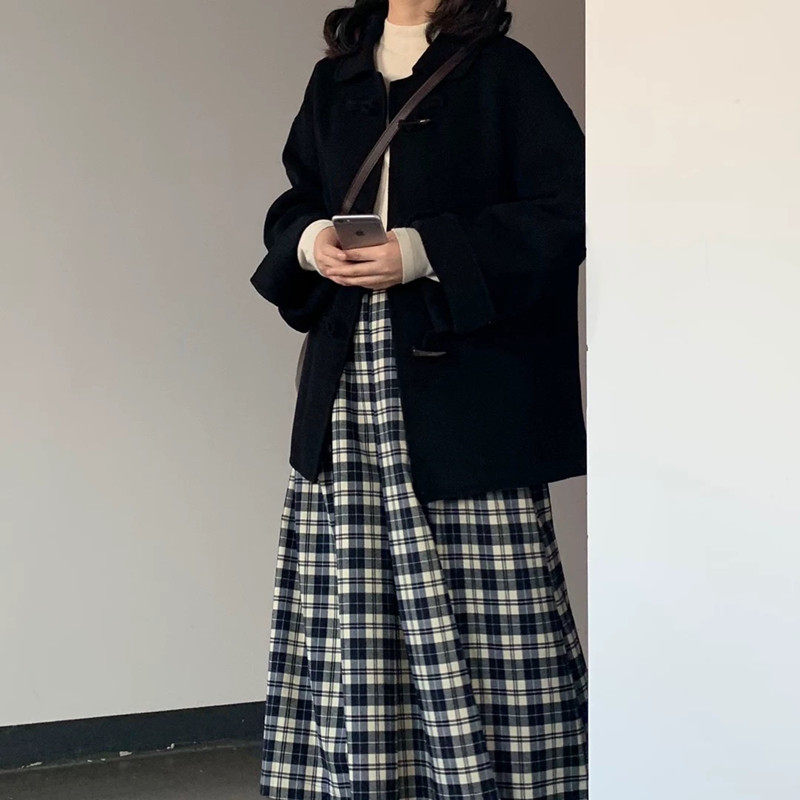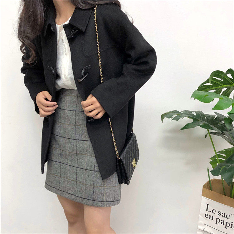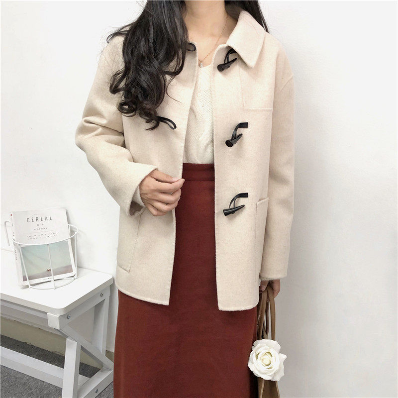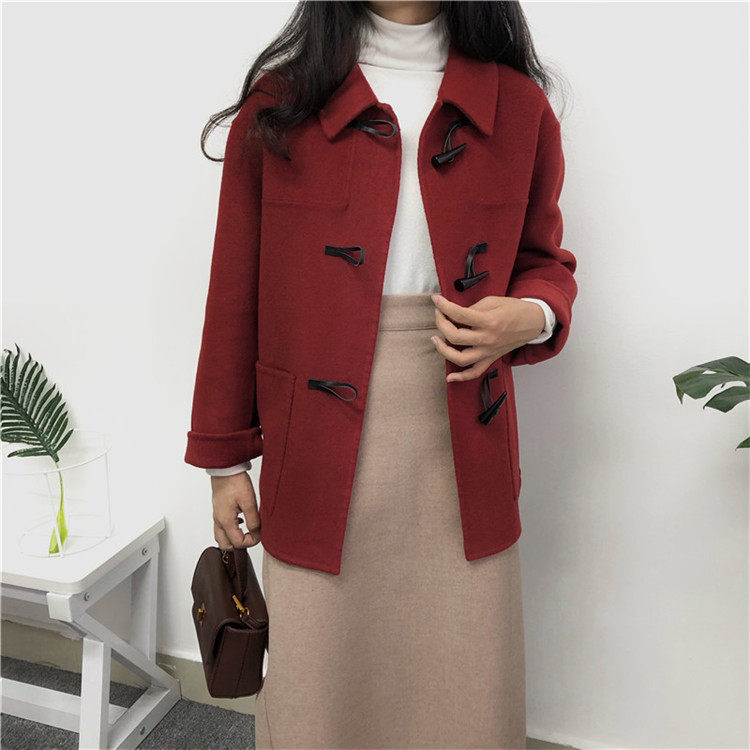 2022 autumn and winter new South Korea Dongdaemun horn buckle double-sided cashmere coat women's short short small woolen coat