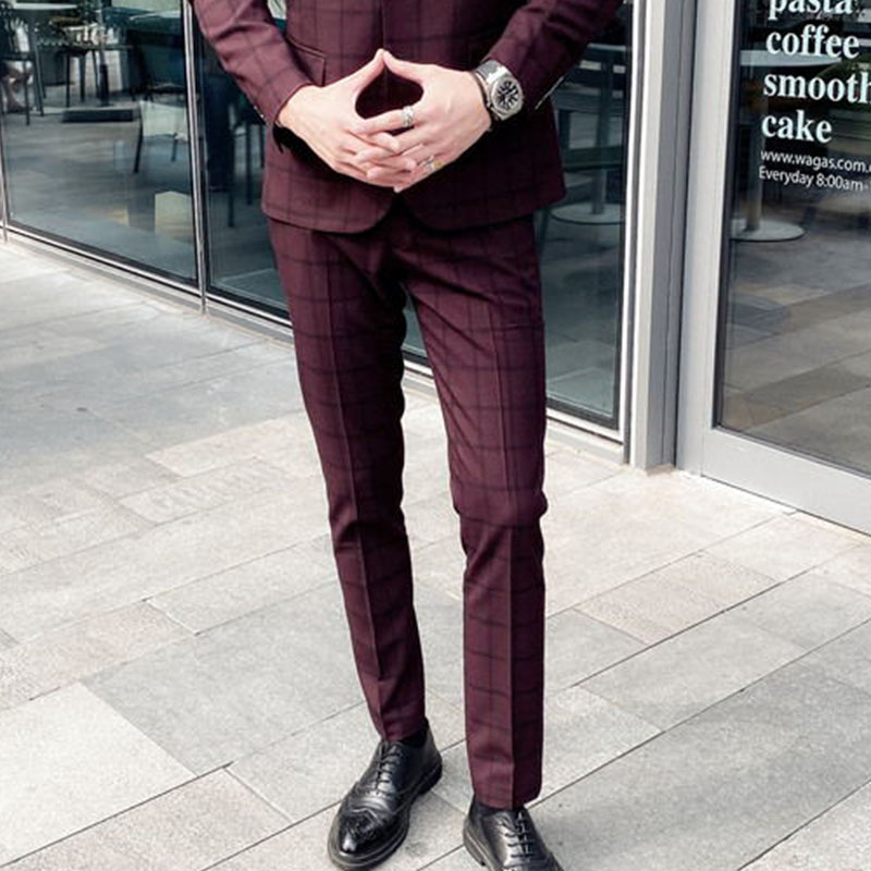 Trousers men's Korean slim cigarette tube pants Suit pants Casual business work pants Youth casual plaid suit pants