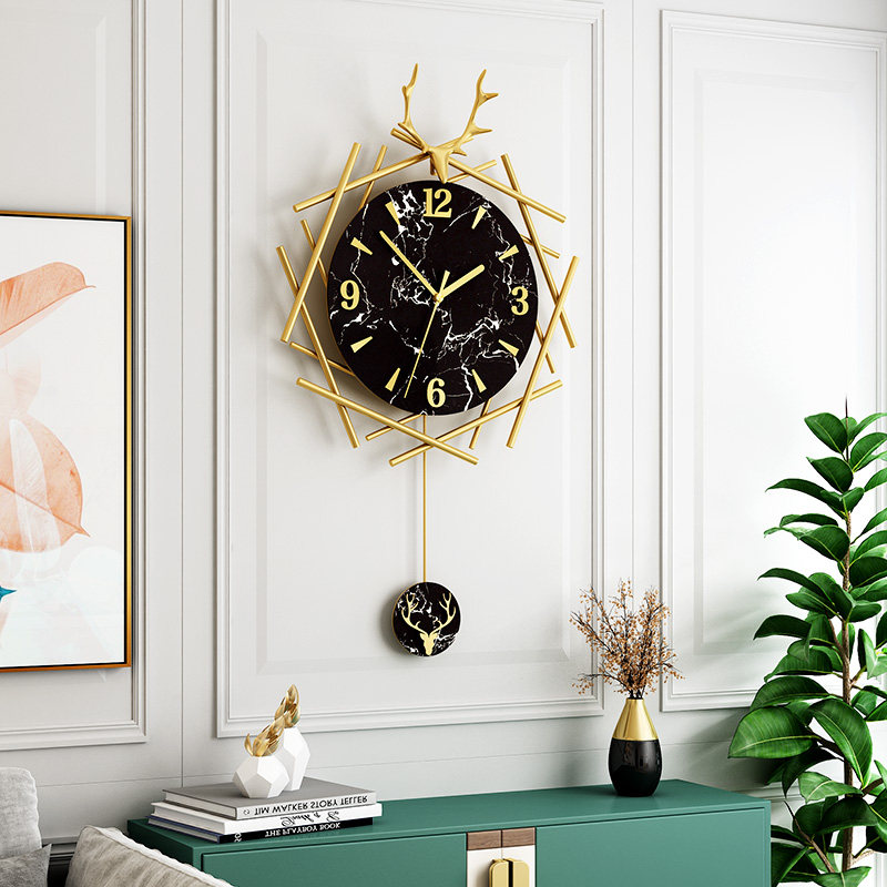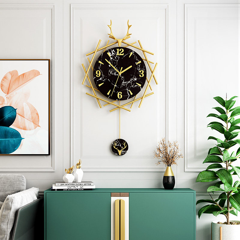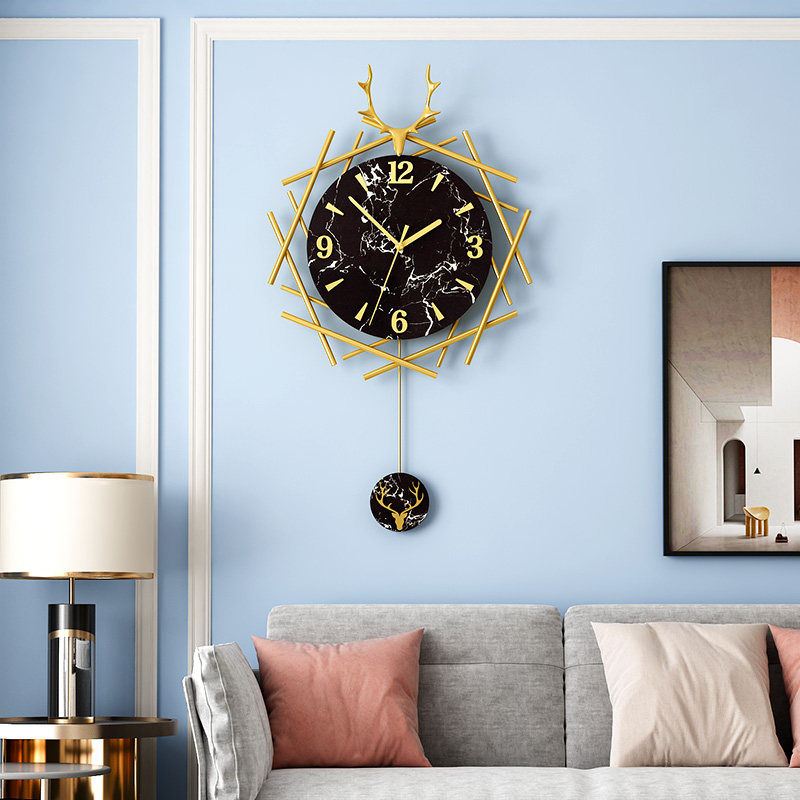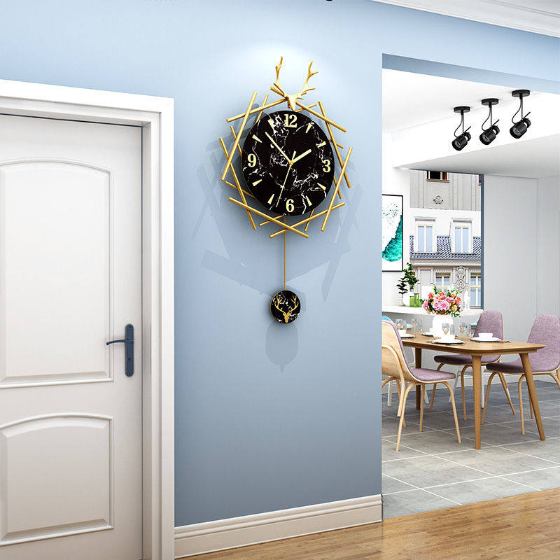 Nordic Deer Head Light Luxury Watch Hanging Clock Living Room Home Fashion Creative Clock Modern Minimalist Personality Art Hanging Watch