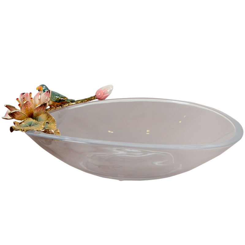Enamel colored crystal glass large fruit plate European style living room creative transparent dried fruit basket American home wedding ornaments