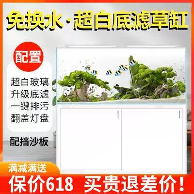 Aquatic tank small and medium-sized fish tank aquarium ultra-white glass desktop living room ecological lazy people without changing water with cabinet bottom filter