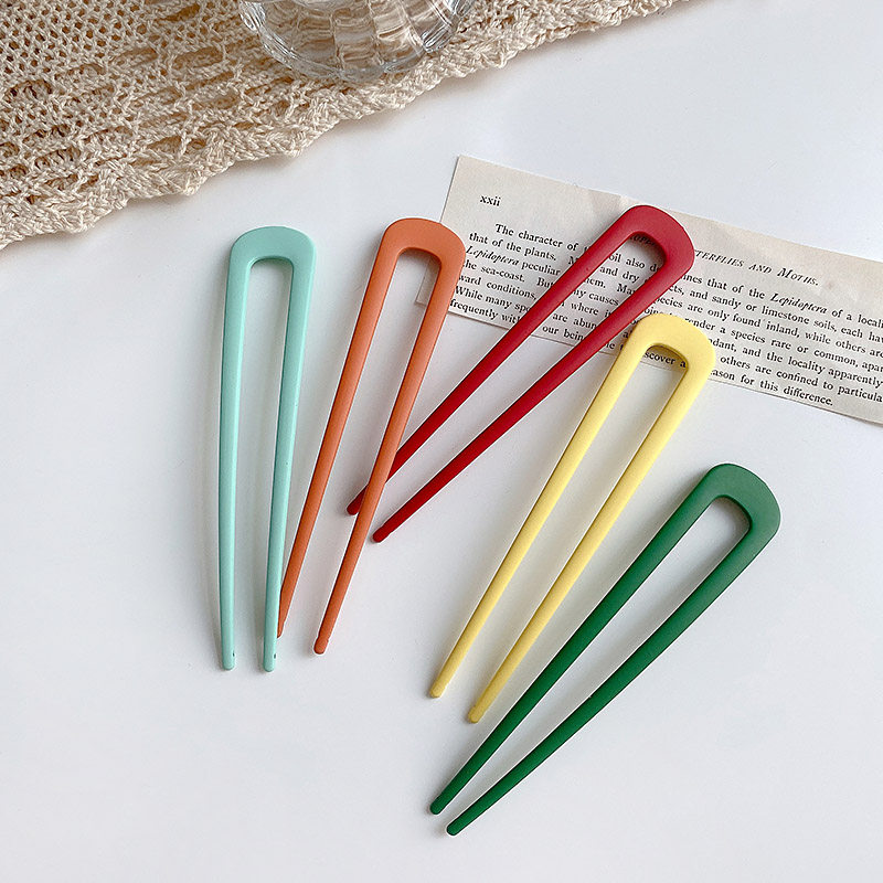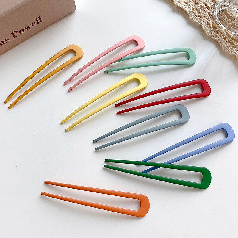 Hairpin Korean simple modern fresh metal one-word hairpin U-shaped hairpin Korean color hairpin can be coiled hairpin