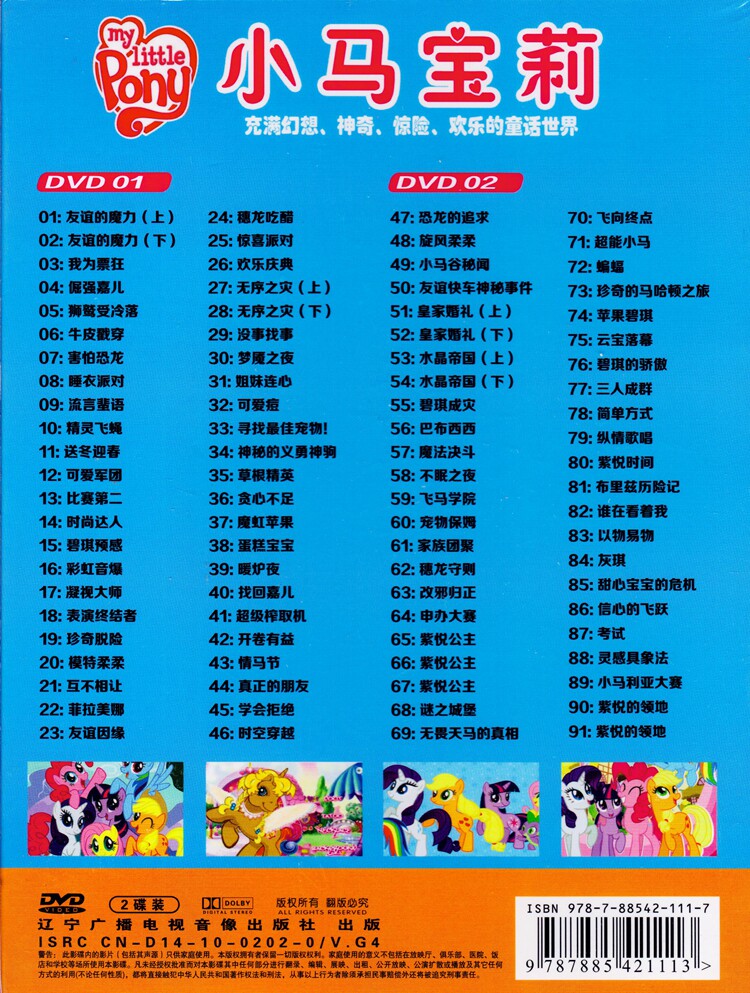 Version high-definition children cartoon cartoon motion picture small horse rainbow pony 91 episodes car-borne disc domestic vehicle 2DVD