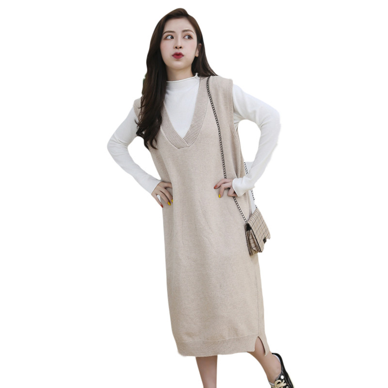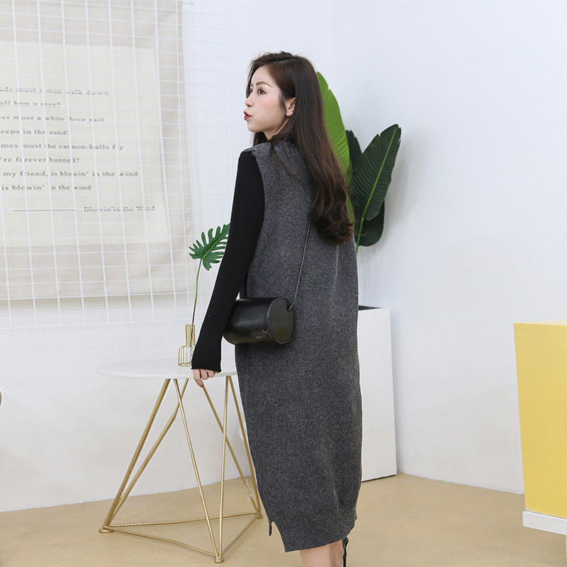 Maternity wear autumn new large size loose vest sweater mid-length version of Western style late pregnancy bottoming sweater suit