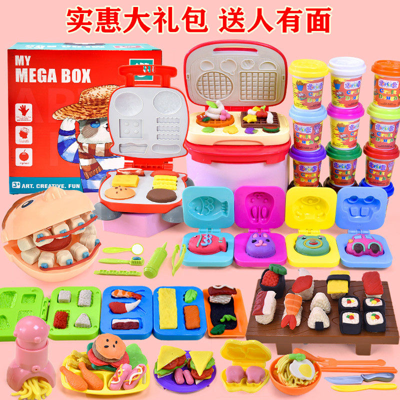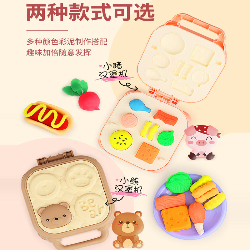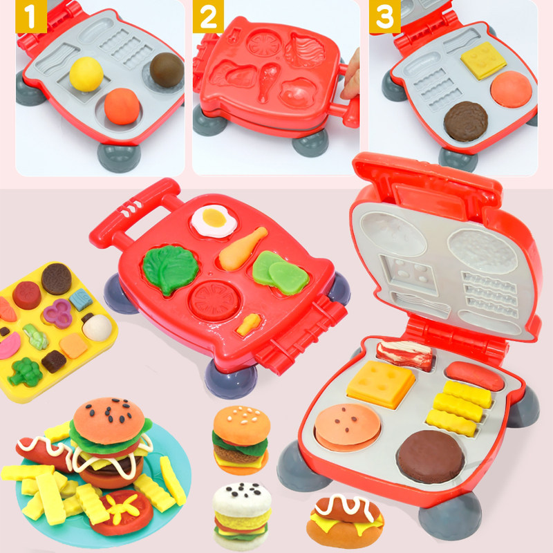 Chic and pleasing children with coloured mud for burger fries Toy bread maker Breakfast Waffle Electric Cake Pan Toy