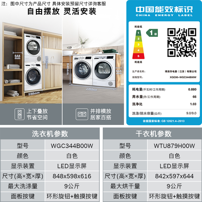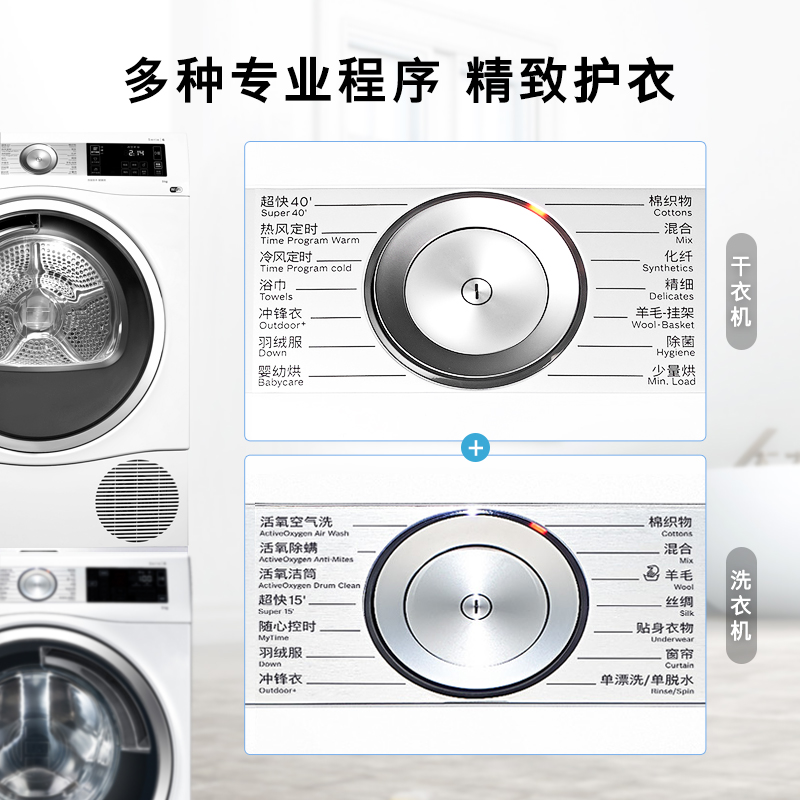 Bosch Bosch 9 9KG Live oxygen sterilization washing machine heat pump dryer Washing and drying set 344B00 879H00