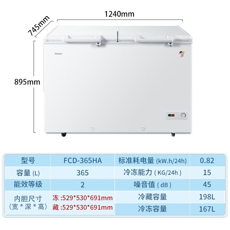 Haier Shuangwen Ice cabinet 315365515 liters double box refreshing refrigerated dual-use commercial large capacity freezer