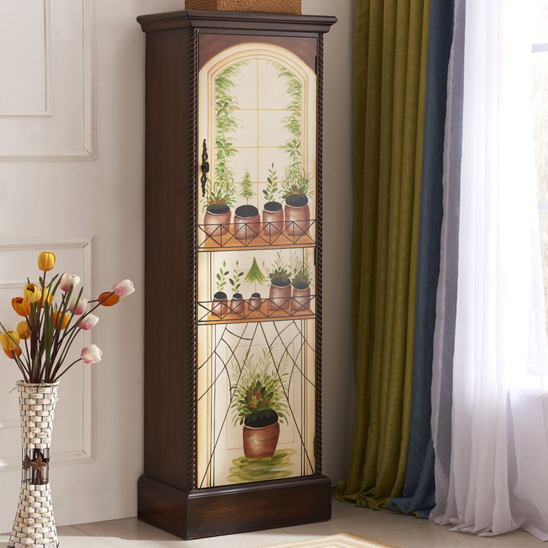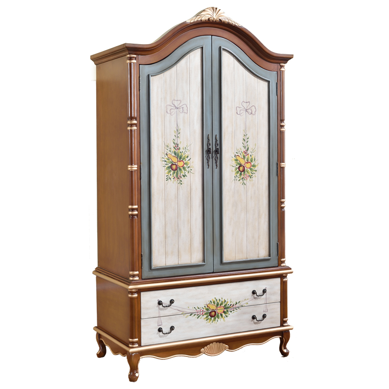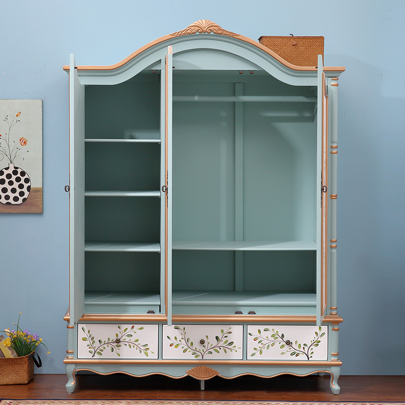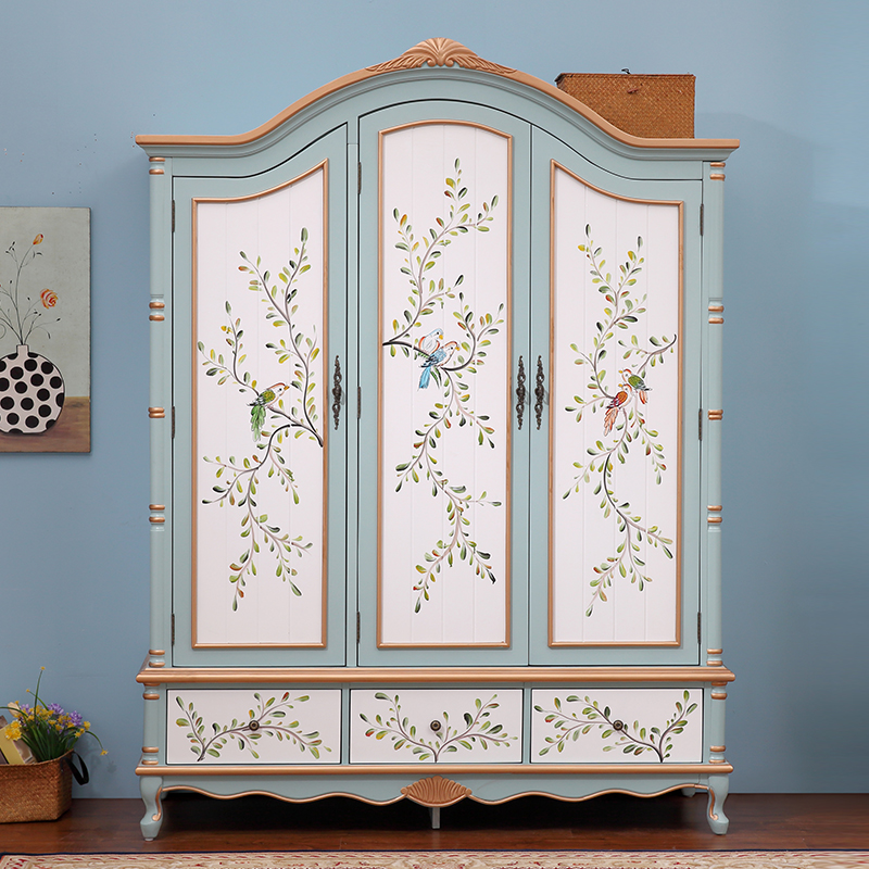 American Solid Wood Wardrobe Bedroom Color Drawing Three Doors Large Wardrobe Fields Garden Retro Two Doors Closet Ostyle Storage Big Closet