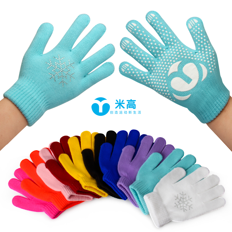 Rice High Skating Gloves Anti-Slip Hot Drill Children Men And Women Adults Thickened Figure Skating Thickened Ice Cutter Glue Point Gloves