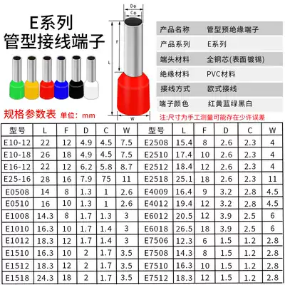 Tube-type terminal VE1008 pin-shaped terminal 1508 European cold-pressed terminal block wire lug brass