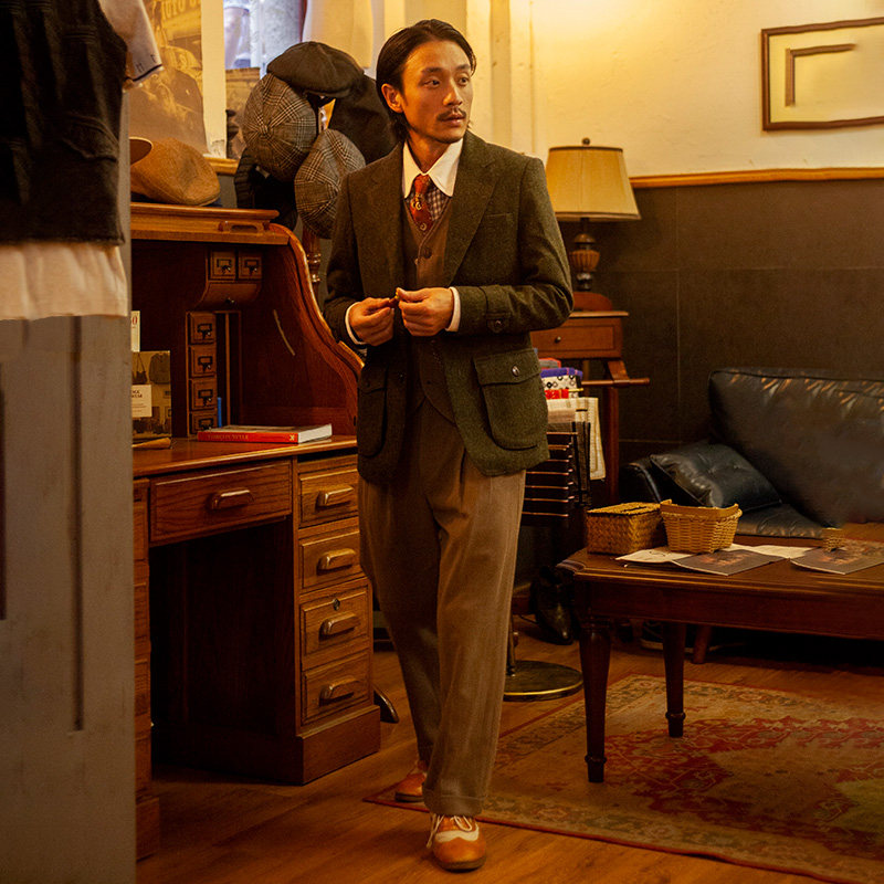 SOARIN Independent retro Inn Wind Airy Suit Men Hunting Style Coats Business Casual Workout Single West Suit