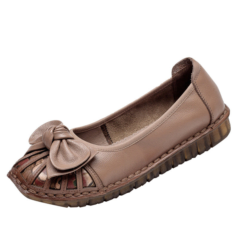 Round Head Genuine Leather Bag Shoes Soft Bottom Middle Aged Mother Shoes National Wind Retro Anti-Slip Bull Gluten Bottom Flat Bottom Women Shoes Seniors Shoes