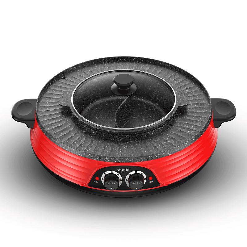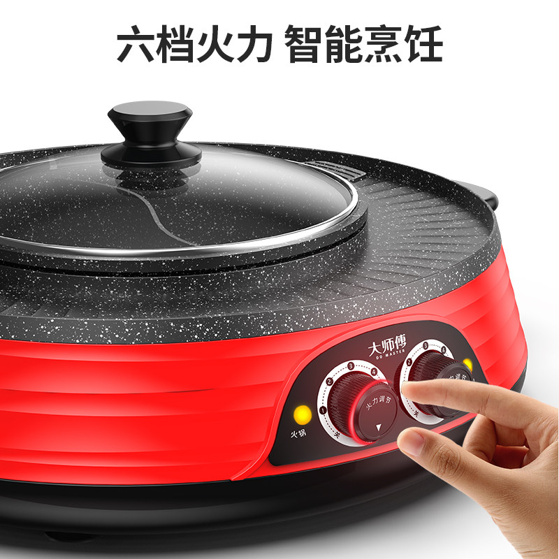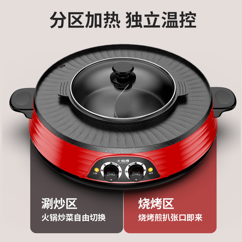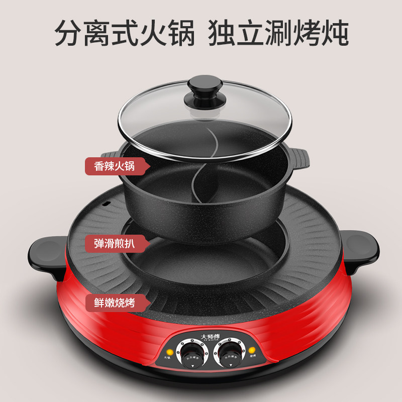 Hot pot barbecue integrated boiler Home Han style separable frying and roasting machine Multi-functional non-stick electric baking tray Boiling Baking Brush Stove