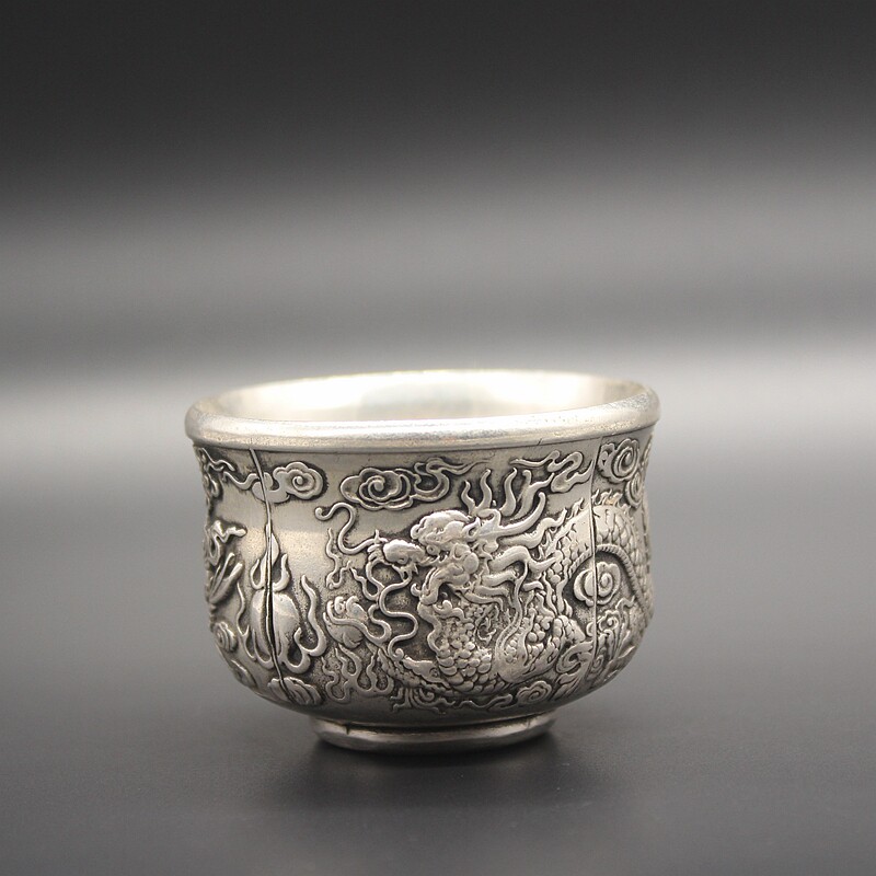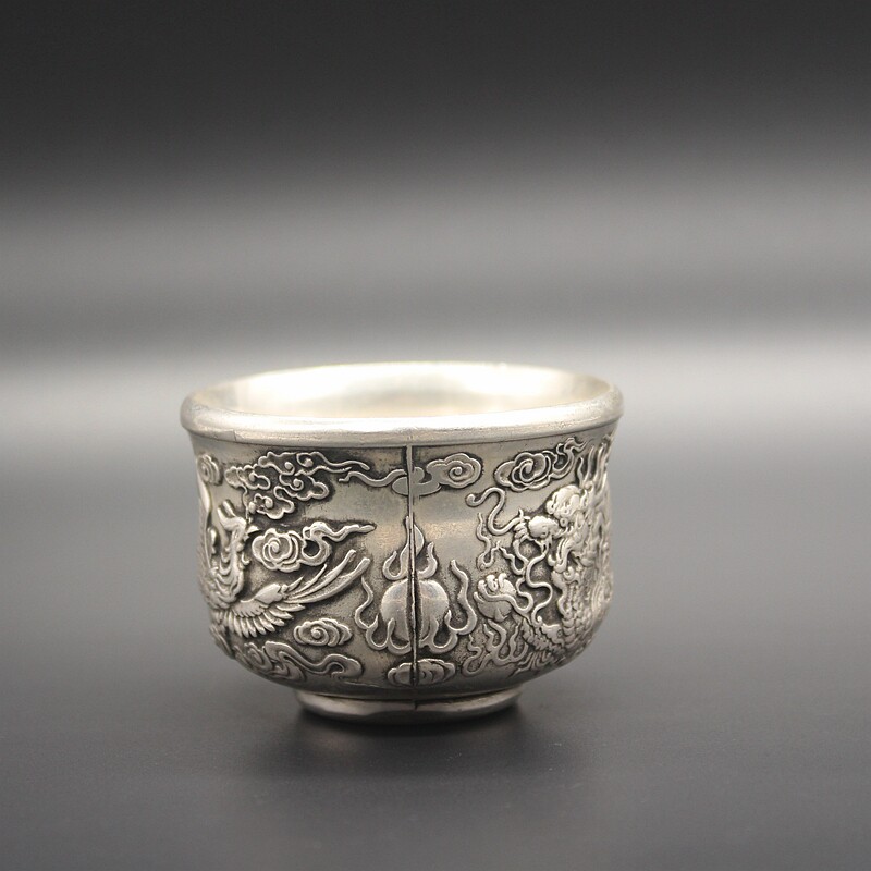Antique miscellaneous collection Antique imitation silver wine glass dragon and phoenix wine glass dragon and phoenix grab treasure wine glass copper wine glass