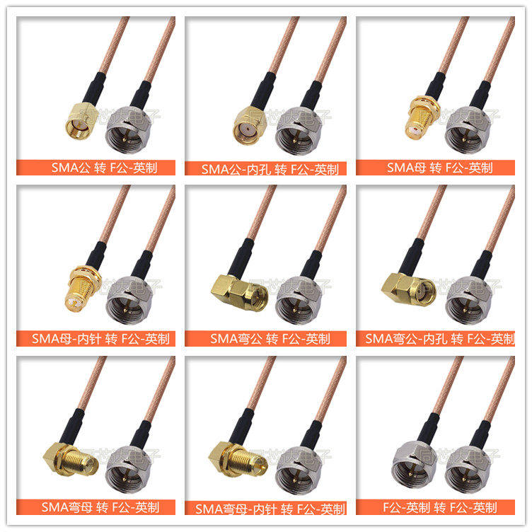 SMA Male to F Male (Inch) SMA Male-Inner Hole to F Male (Inch) SMA Female to F Male (Inch) SMA Female-Inner Pin to F Male (Inch) SM