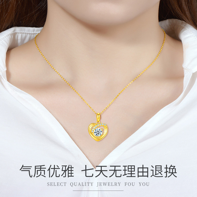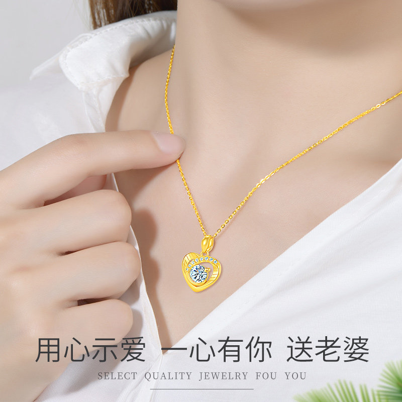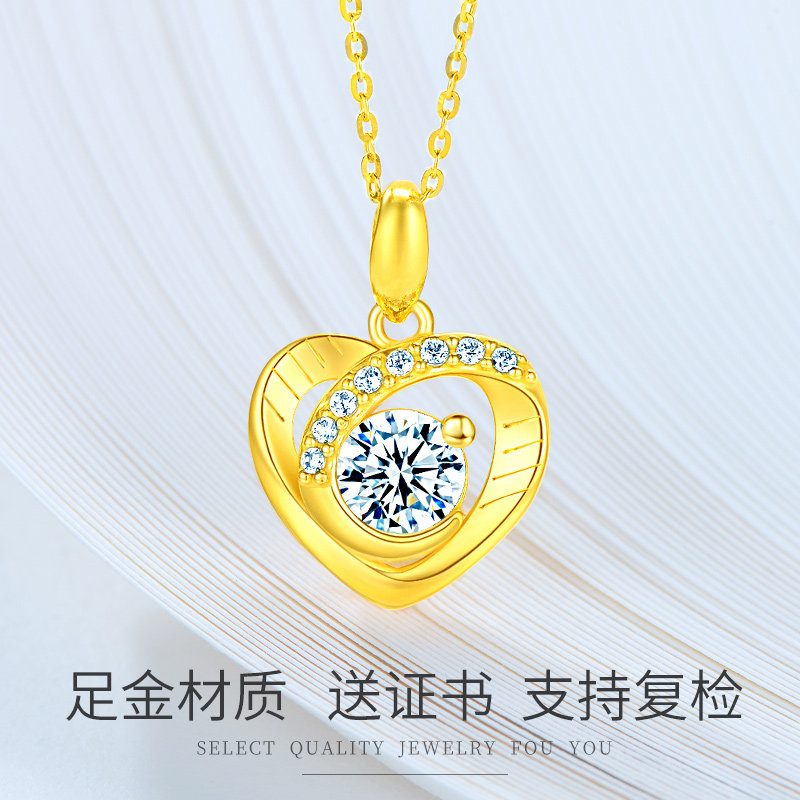 Gold Necklace Women's 24K Pure Gold New Valentine's Day Girlfriend Love Heart Shaped Ladies 999 Pure Gold Pendant