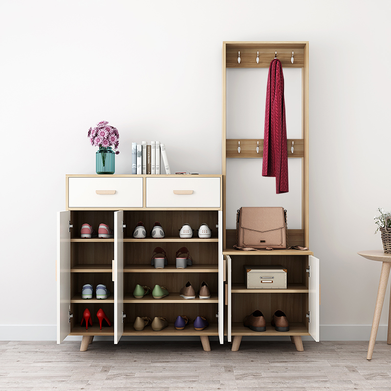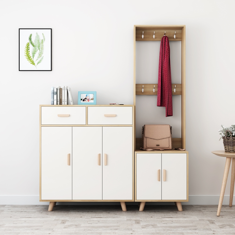 Solid wood shoe cabinet Coat cabinet one wall Nordic door new 2020 explosion-style wood color foyer cabinet entrance cabinet