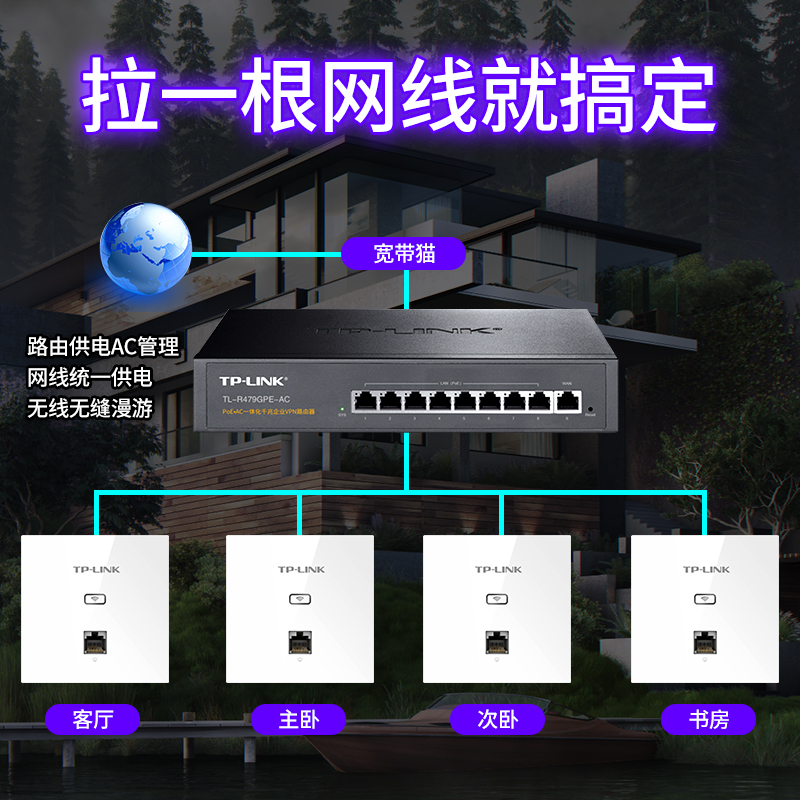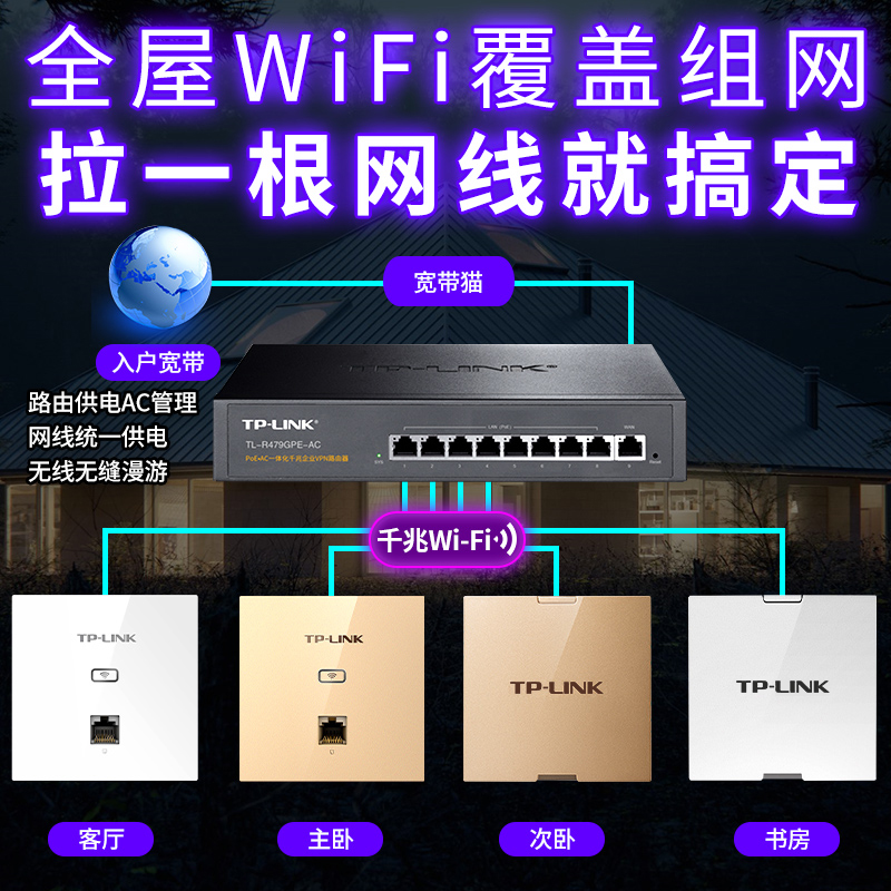 TPLINK Gigabit wireless AP panel 5G dual-band 86 type wall wifi 6 panel in-wall PoE router AC integrated power supply home villa network whole house wifi coverage set