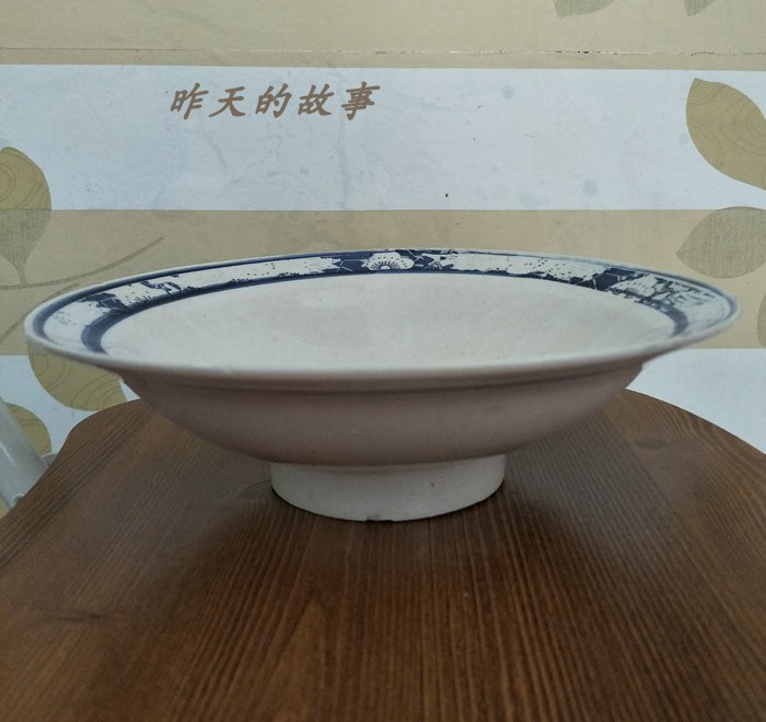 Nostalgia Old Stock 80s Rozhuang Green Flower Porcelain Pan 20cm Deep Disc Props Collection