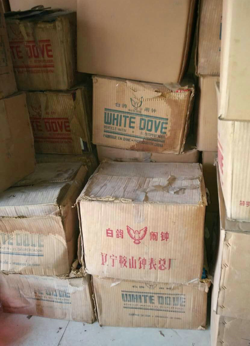 Nostalgic old inventory 1990s white pigeon brand mechanical alarm clock 3-1 large quantity prop collection