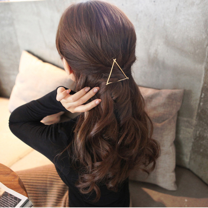 European and American fashion ins metal feeling retro triangle moon round hair clip edge clip pony tail clip female alloy hair clip