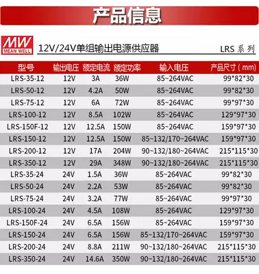 Meanwell switching power supply LRS-75W100W150W200W350W220V to 12V24V volt LED light driver