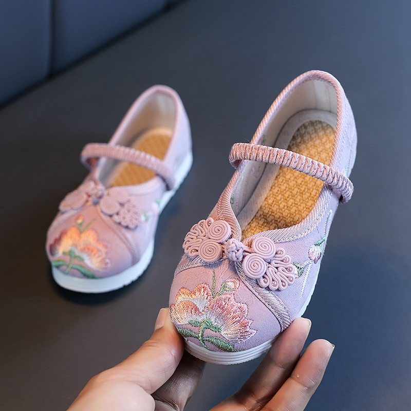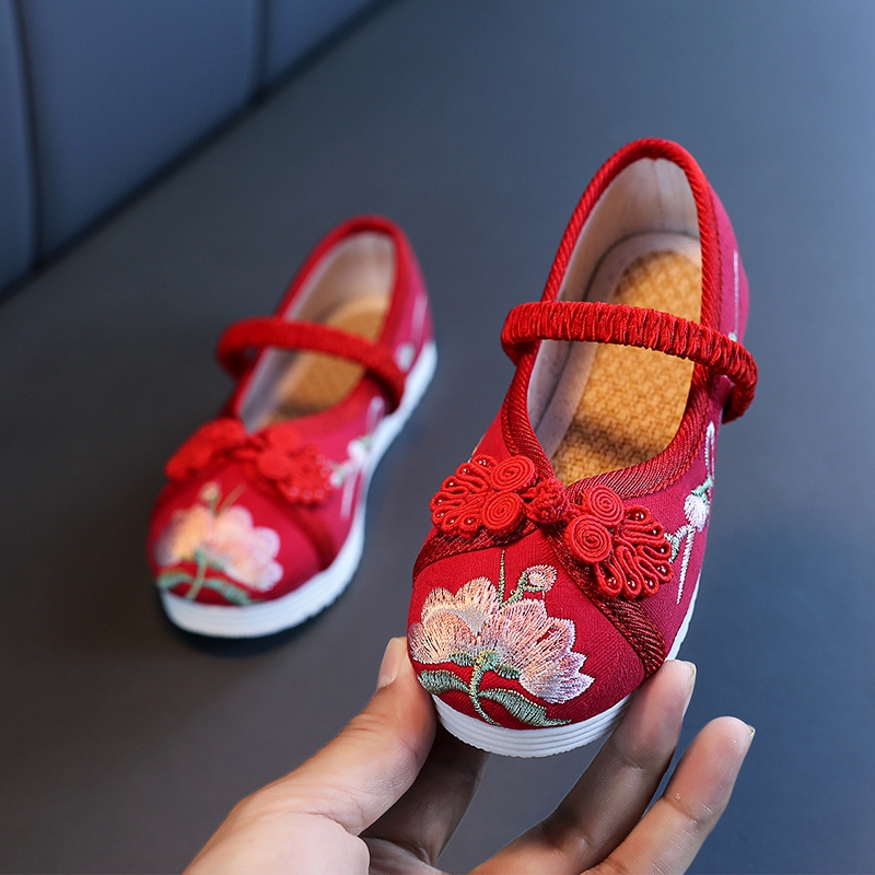 Han clothing shoes girl embroidery shoes national fengyBaby baby princess shoes old Beijing children's cloth shoes old cloth shoes exhibition shoes