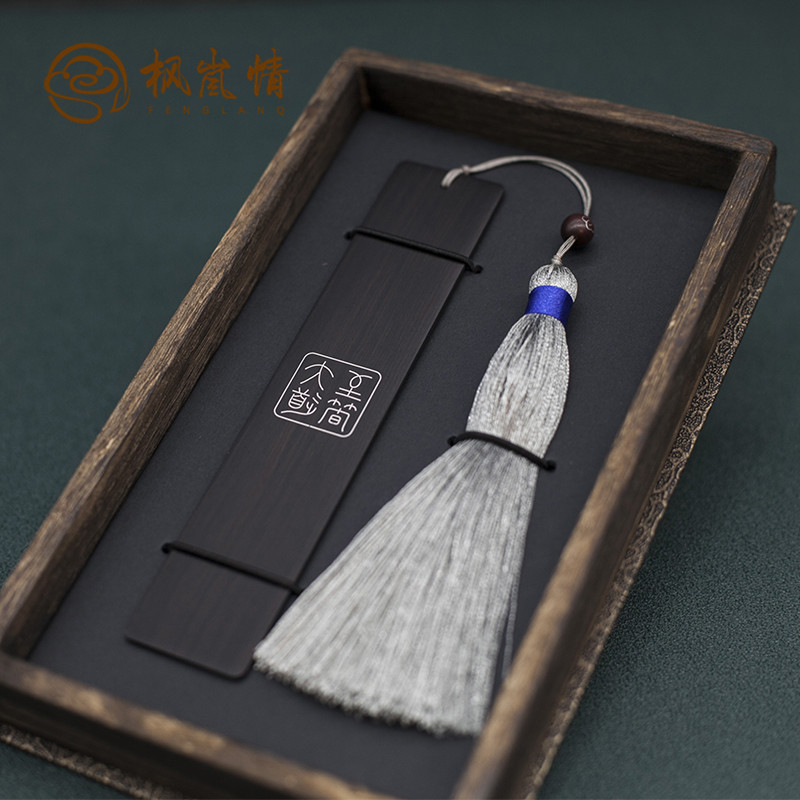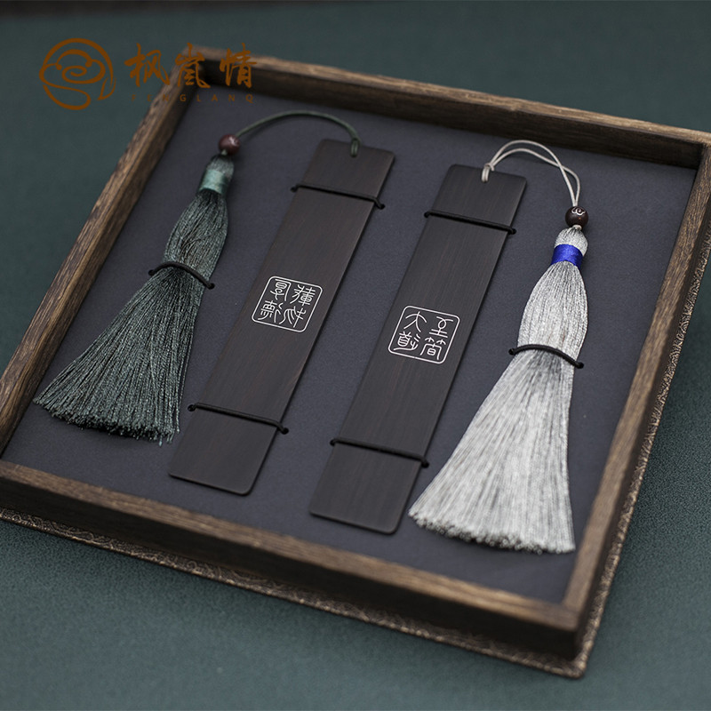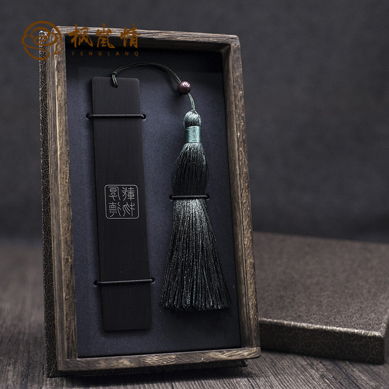 Fenglan love Chinese style black sandalwood bookmarks Avenue to simple virtue carrier black inlaid silver classical letter