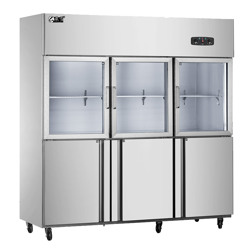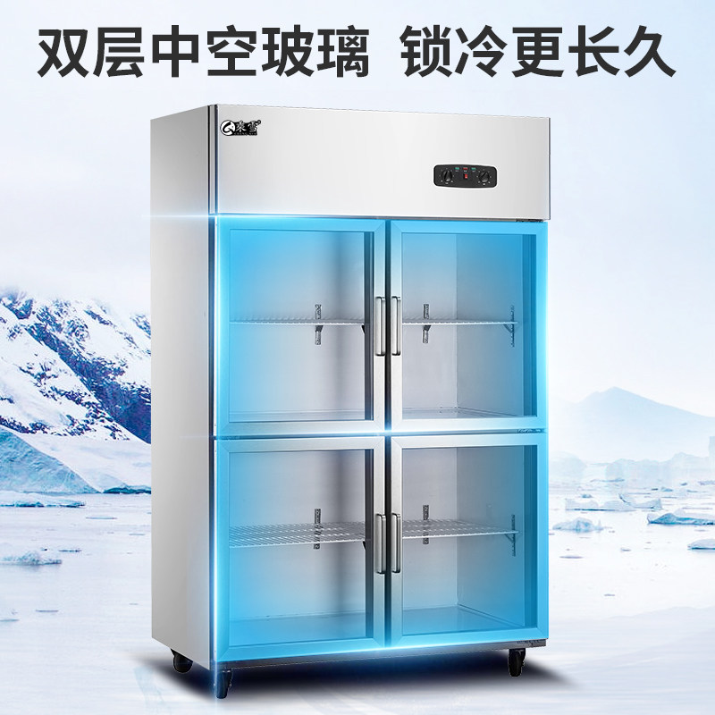Chengxue commercial flat-cooled double-temperature workbench four-door six-door upper glass door refrigerated and frozen vertical kitchen refrigerator