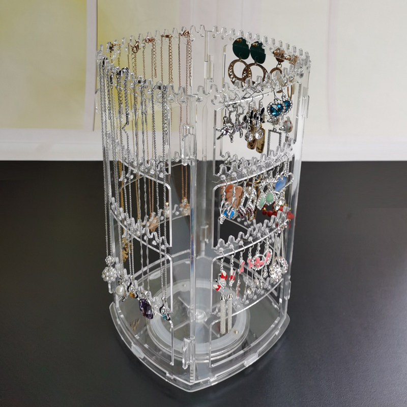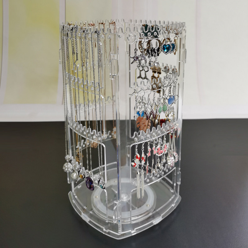 Transparent four-sided 360 degree rotating jewelry rack stud earrings earrings earrings earrings necklace necklace bracelet storage rack display stand