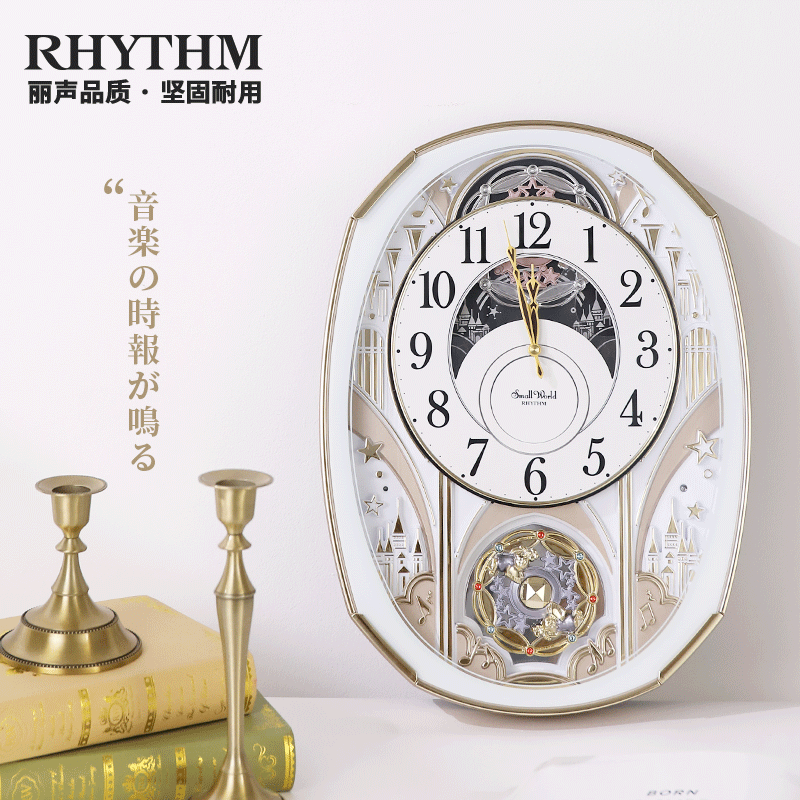 RHYTHM Lisheng Music Chimes Wall Clock Living Room Mute Wall Watch European Style Hotel Office Clock Modern