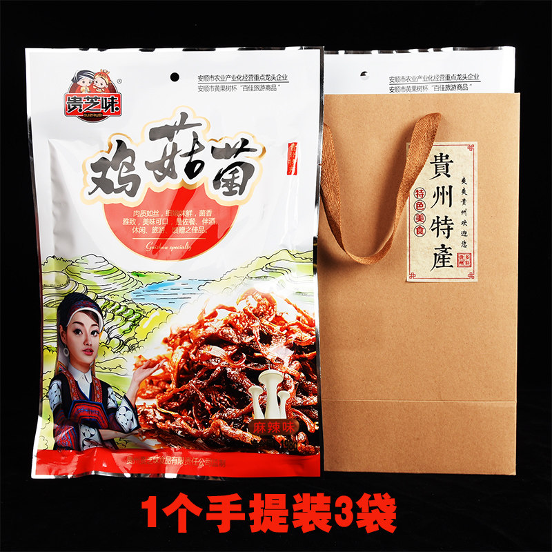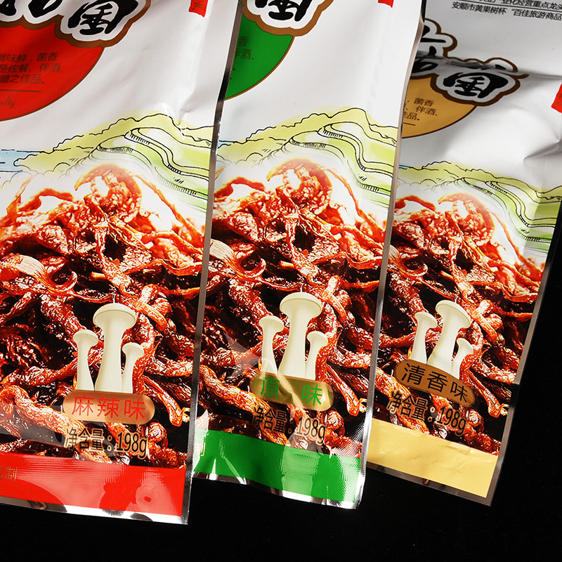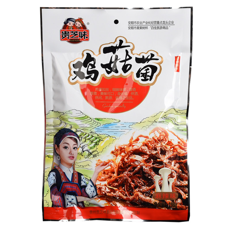 Random Guizhou Anshun specialty snacks chicken mushroom 198g open bag ready-to-eat chicken fir mushroom original spicy flavor
