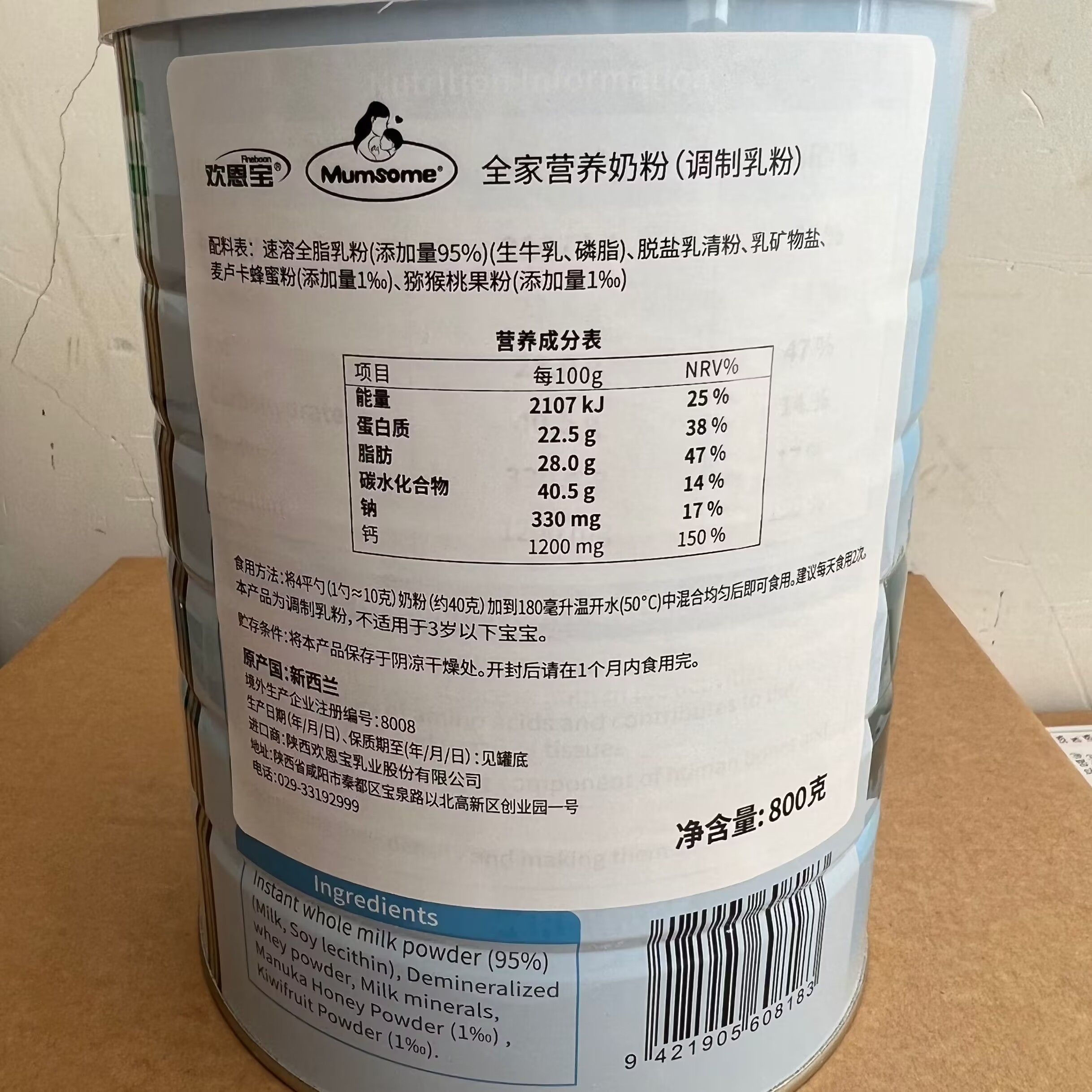 23-year-old adult full-fat milk powder expiring in March 2023, New Zealand imported whole family high calcium milk powder 800g