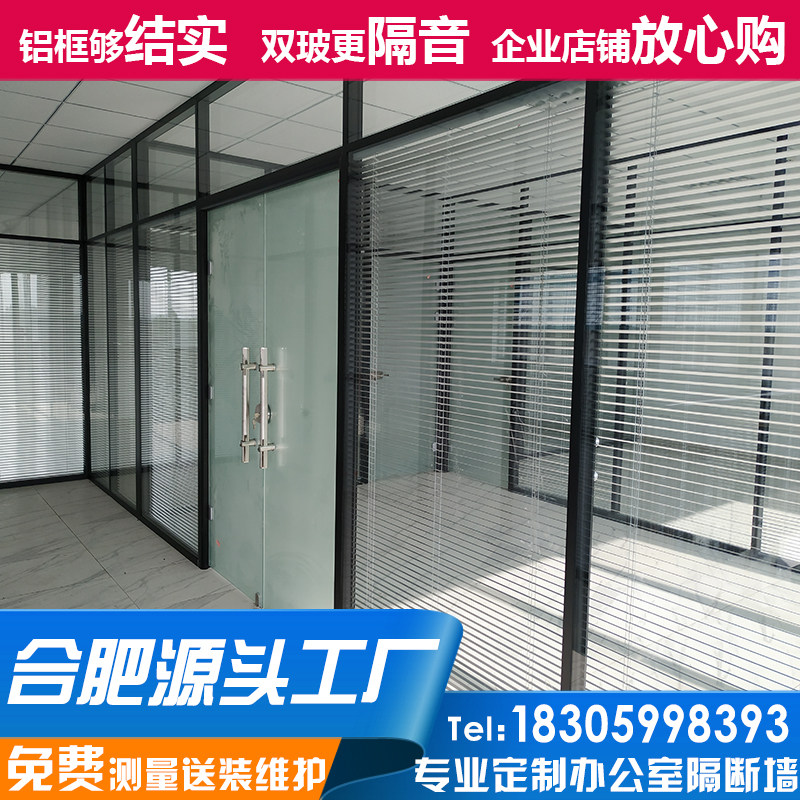 Glass partition wall tempered single layer frosted aluminum alloy hollow office double glass louver high partition Hefei, Anhui