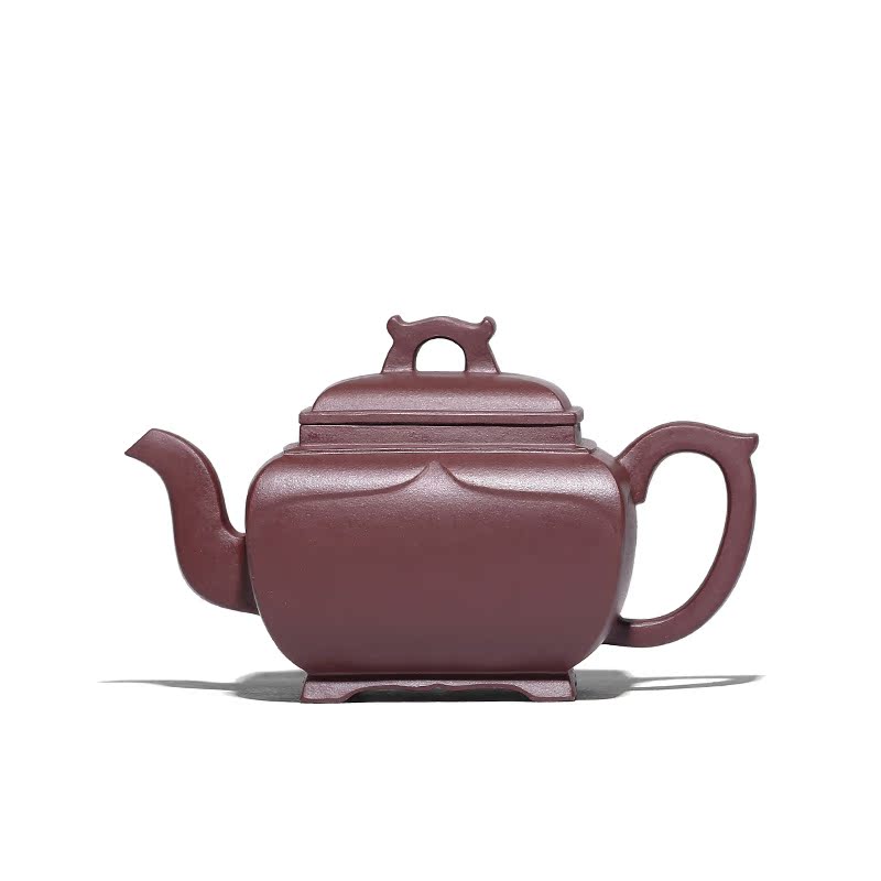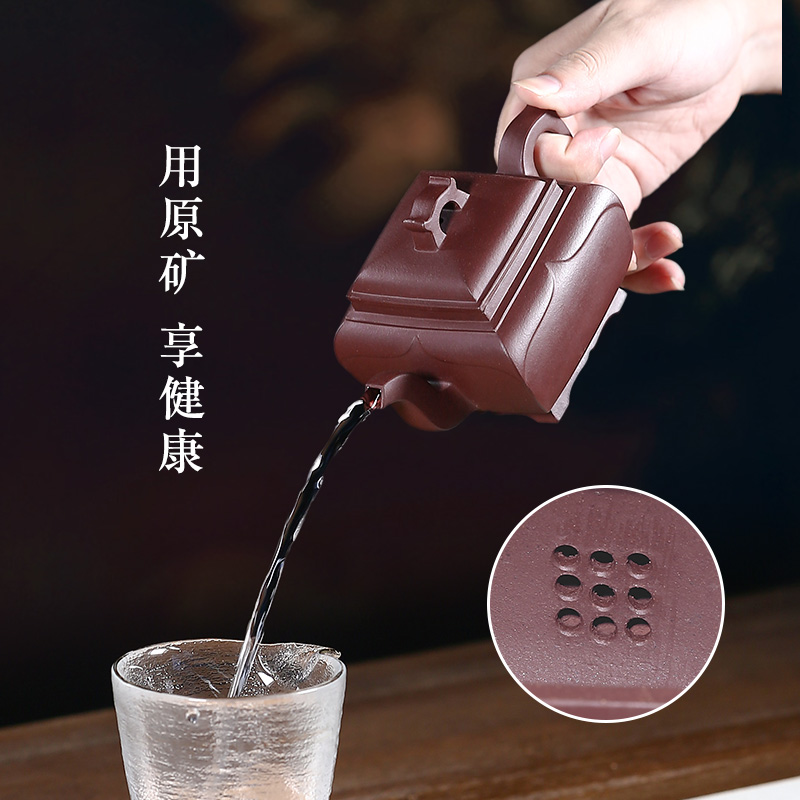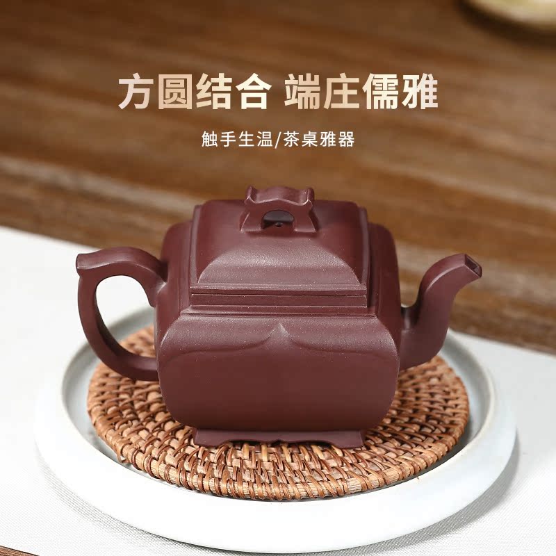 Yixing purple sand Teapot Pure hand-made tea Gongfu tea Famous lettering square teapot Purple mud square Ling flower teapot