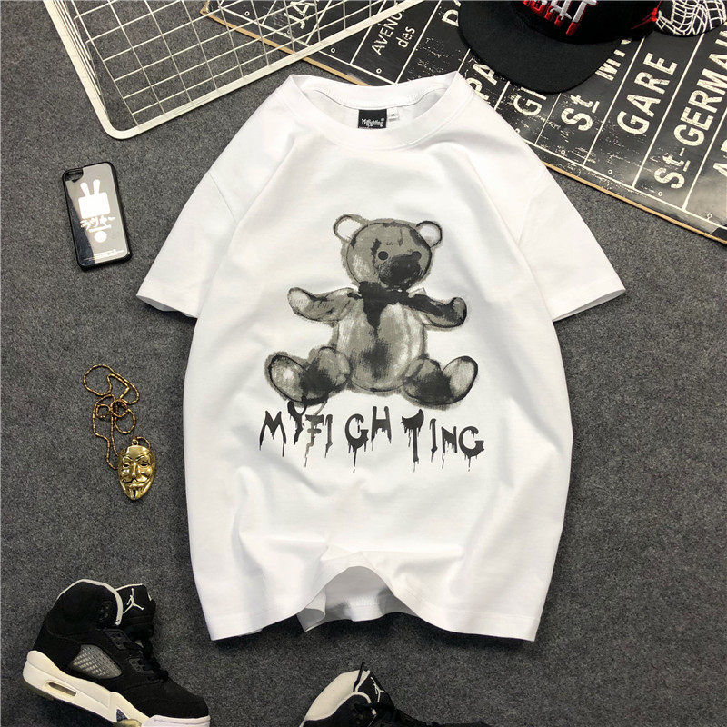 Tide card 2021 Summer Korean version Little Bear short sleeve T-shirt female hip-hop lovers male and female pure cotton half sleeve bestie net red ins
